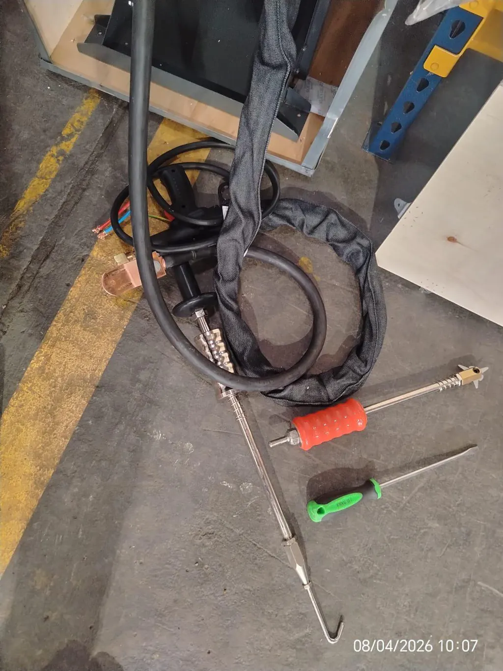 Accesorios destacados: Incluye carro transportador, martillo de inercia eléctrico, garra, ventosa de succión, y un kit completo de consumibles (30 arandelas circulares, 10 triangulares, 10 alambres ondulados y 2 barras de carbono).